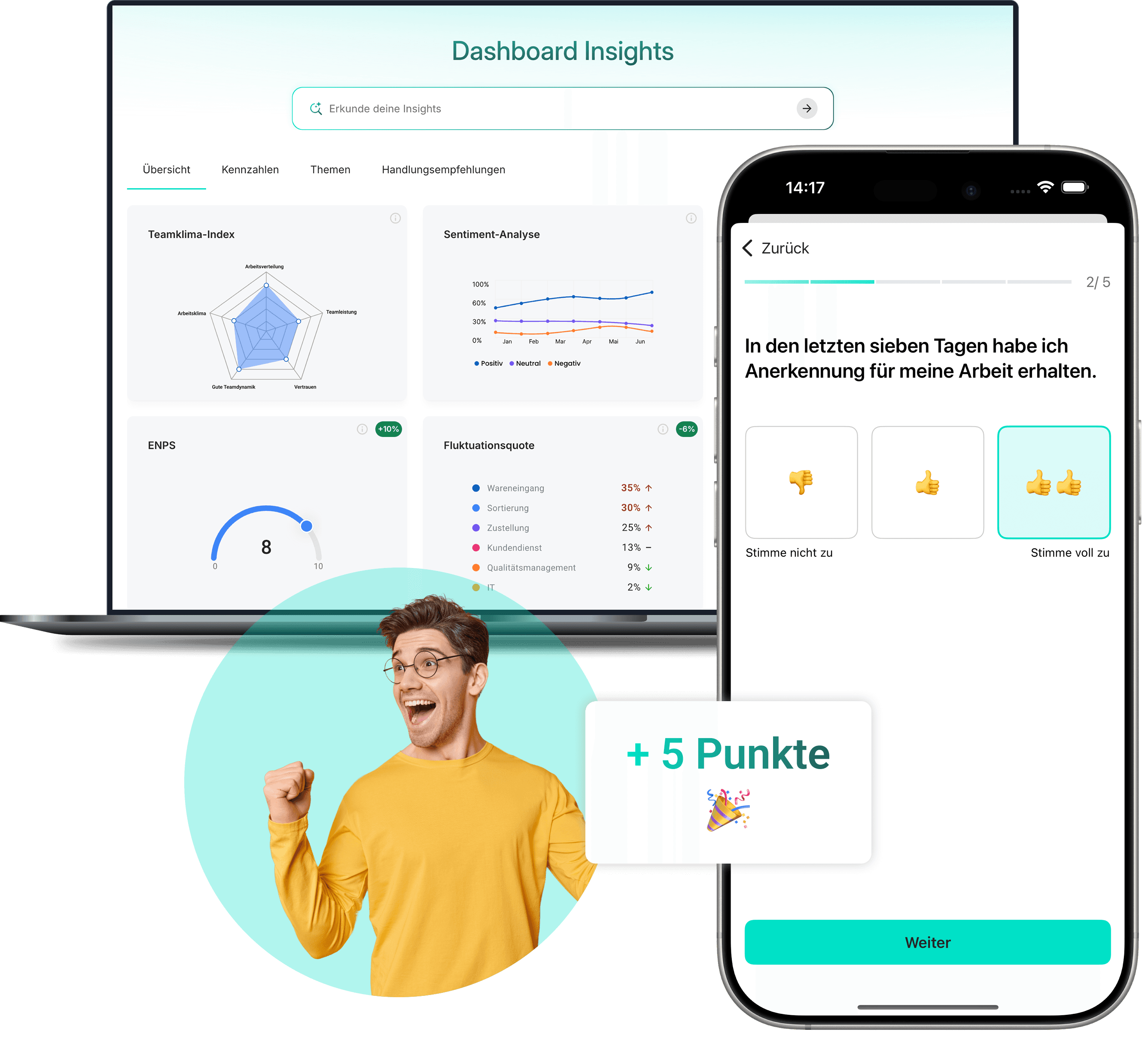 Viele Unternehmen setzen bereits auf Benefits, Umfragen oder interne Kommunikation – aber jede Maßnahme läuft für sich. Unterschiedliche Tools, unterschiedliche Zugänge, unterschiedliche Prozesse. Mitarbeitende erleben das als Einzelaktionen, nicht als Fürsorge. Und Mitarbeiterbindung entsteht eher zufällig als systematisch.