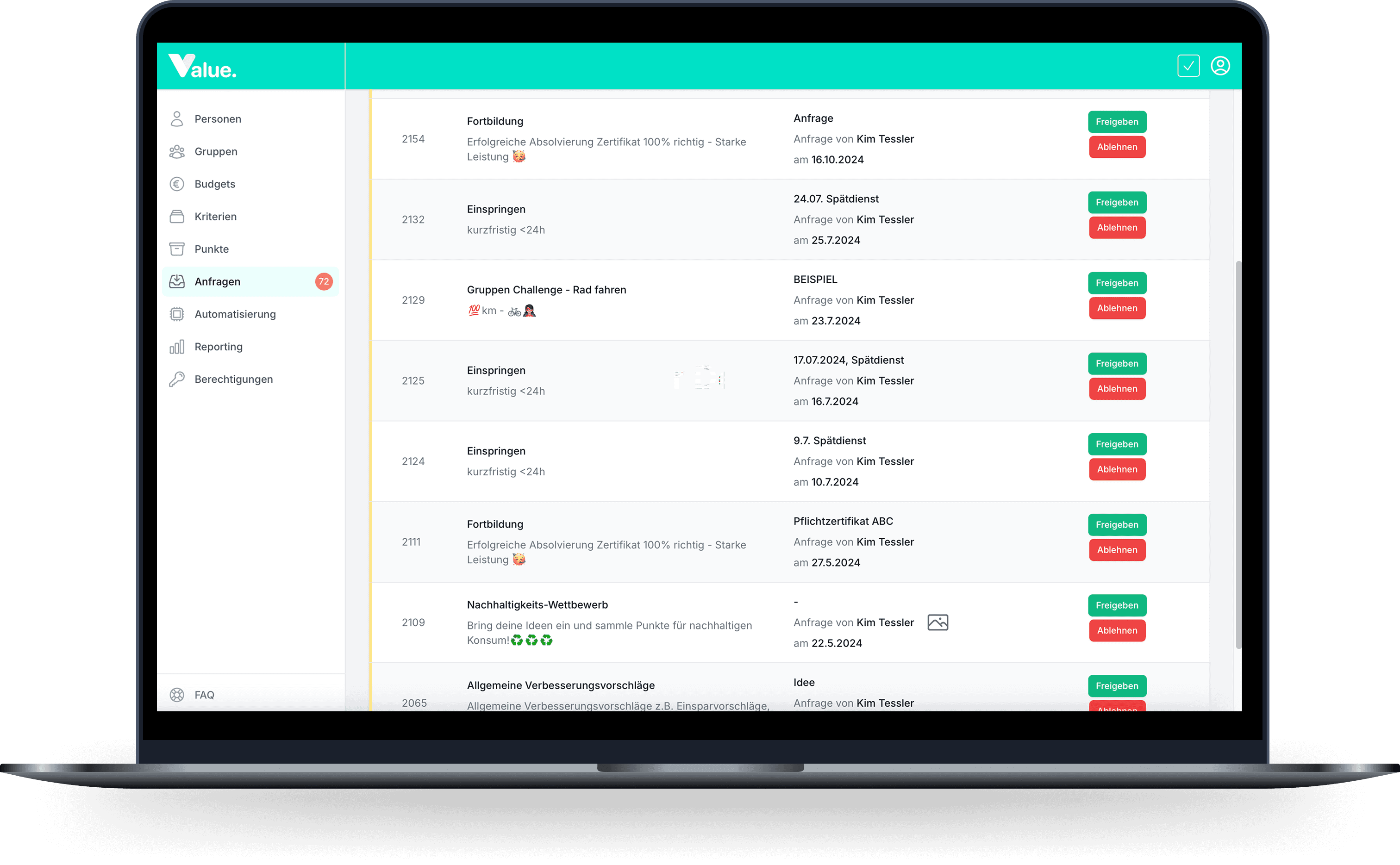 Value Manager-Backend für Führungskräfte